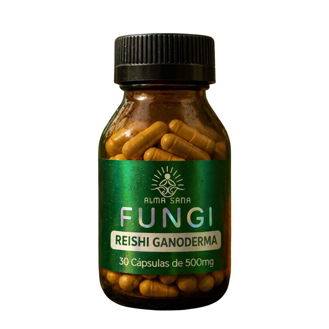 Nutrientes Estrella: Matriz pura de hongo Reishi (Ganoderma lucidum) rica en Beta-glucanos para tu sistema inmune y Triterpenos que apoyan la función hepática y relajan el sistema nervioso central